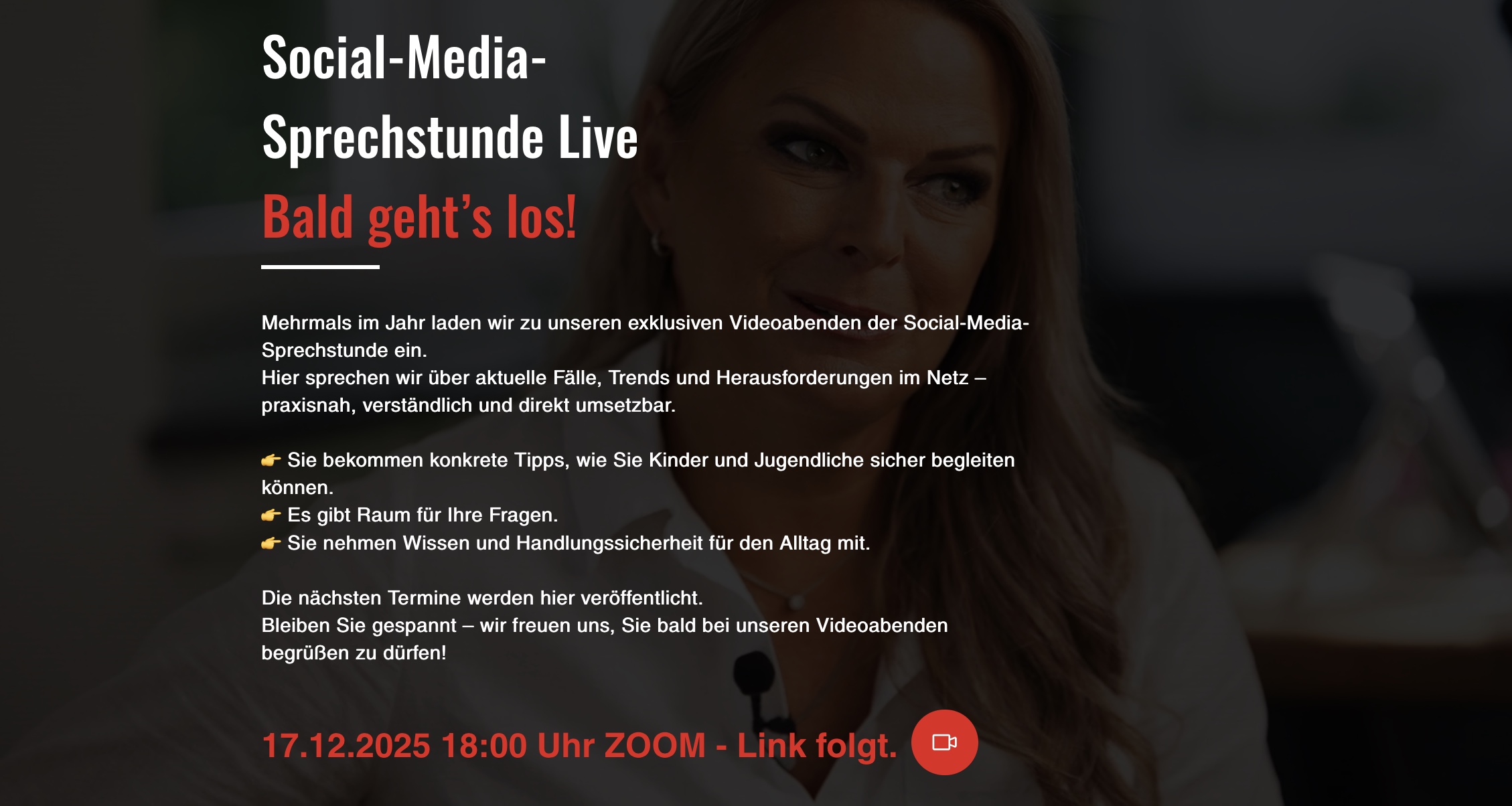 - Inspirierende und aufrüttelnde Vorträge zu Chancen und Gefahren für Kinder und Erwachsene durch die Nutzung von Social Media, KI und Co